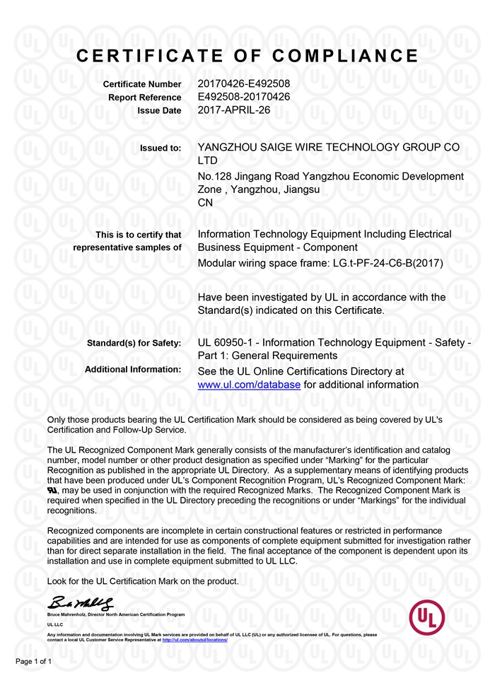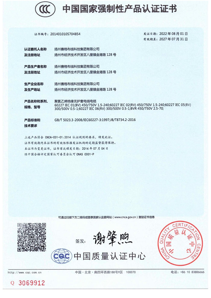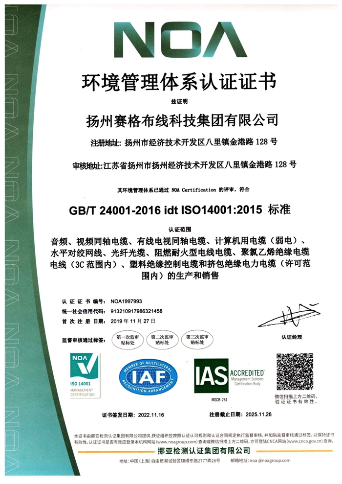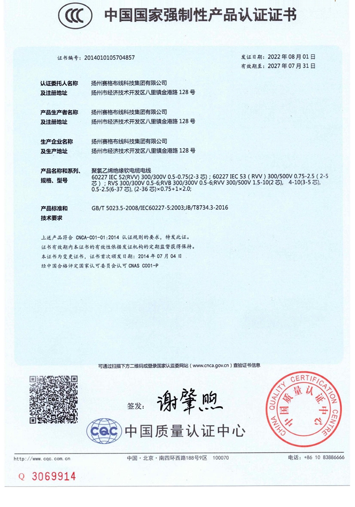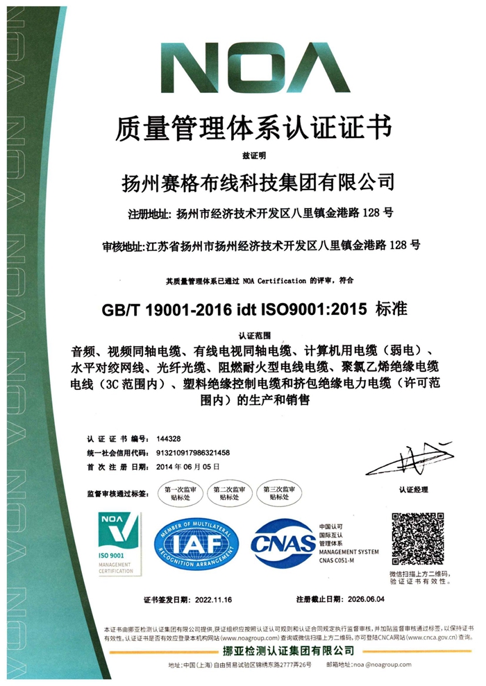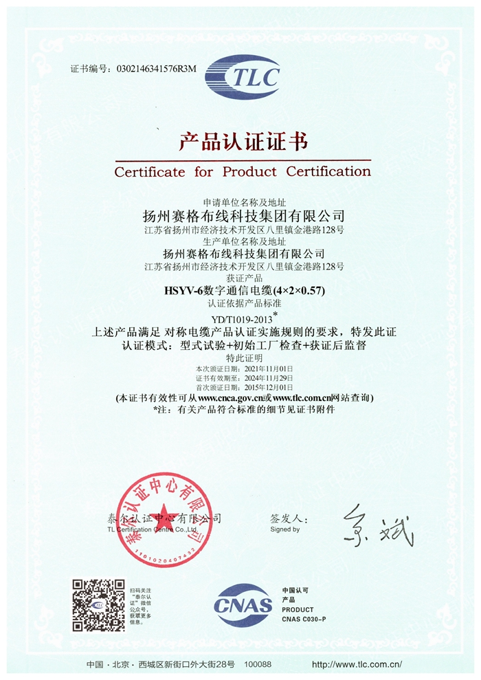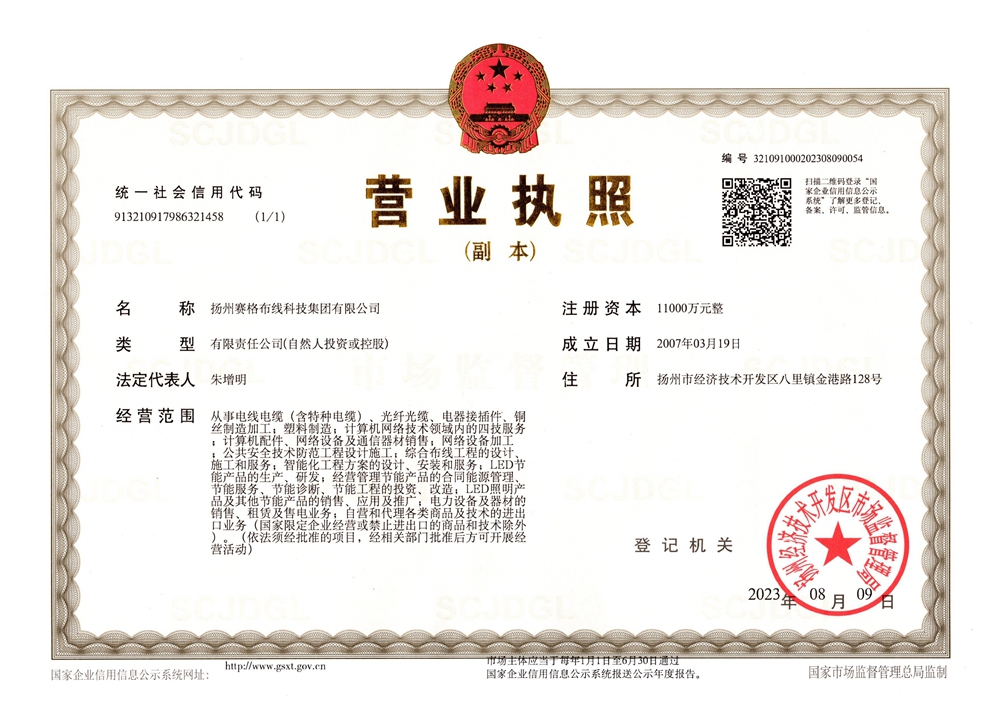 “賽格集團(tuán)”位于美麗的揚(yáng)州,公司占地面積106800平方米,固定資產(chǎn)20000萬(wàn)元,職工近千人,其中各類專業(yè)技術(shù)人員過(guò)百人,系中國(guó)安全防范產(chǎn)品行業(yè)協(xié)會(huì)理事單位。公司擁有各種先進(jìn)的綜合布線產(chǎn)品及線纜制造和實(shí)驗(yàn)檢測(cè)設(shè)備,產(chǎn)品嚴(yán)格按照國(guó)家標(biāo)準(zhǔn)或行業(yè)標(biāo)準(zhǔn)組織生產(chǎn),并已獲得國(guó)家質(zhì)量認(rèn)證中心CQC頒發(fā)的CCC證書(shū)和上海挪亞檢測(cè)認(rèn)證集團(tuán)有限公司頒發(fā)的ISO9001:2015證書(shū),泰爾認(rèn)證中心頒發(fā)的“泰爾認(rèn)證”等!